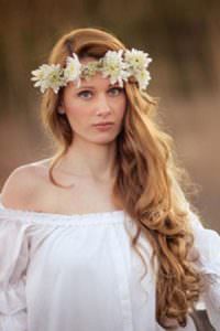 If you have straight hair, consider wearing a centre parting and add a pretty circlet of flowers for a 1970s vibe!